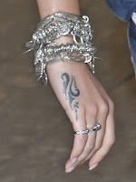 Khloe Kardashian has a hand tattoo of her husbands initials, Cheryl Cole has a lovely tribal tattoo on her right hand, Lindsay Lohan has the phrase "Shhh..." on her finger and NBA star Mike Bibby has the word "Faith" and "Loyalty" tattooed on his hands.